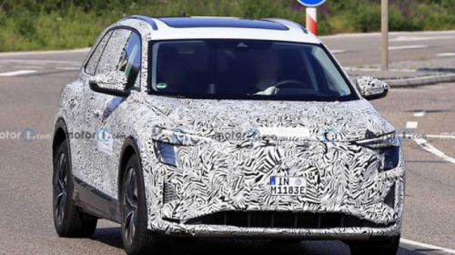 從諜照中可以看出,新車在前臉部分采用了與Q4 e-tron略有不同的設(shè)計,最顯著的差異在于大燈組采用了更加明顯的異型結(jié)構(gòu),更加接近于折線式造型,顯得更加犀利。而燈組內(nèi)側(cè)則依舊是e-tron家族標志性的大面積封死式多邊形面板,此外在前保險杠部分新車采用了時下流行的三段式鏤空裝飾,同樣要比Q4 e-tron顯得更加運動。