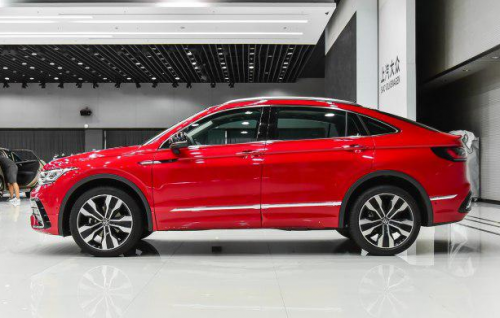 車身側(cè)面,大眾新款途觀 X 則采用了溜背式的轎跑車身,更能體現(xiàn)出極富個性的視覺感受。兩款新車腰線均平直的穿過車身,配合微突出的前后側(cè)翼子板以及雙五輻式的大尺寸輪圈,進(jìn)一步體現(xiàn)了新車的運動感。