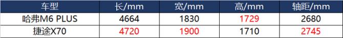 對比兩款車的車身尺寸發(fā)現(xiàn),捷途X70有著絕對性優(yōu)勢。