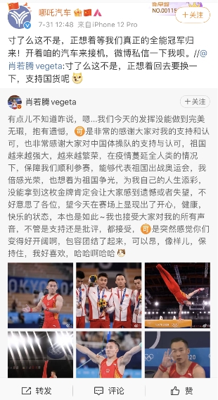 就在7月29日,造車新勢力頭部陣營的哪吒汽車表示:“帶上的是銀牌,我們心中真正的王者。我命由我不由天,哪吒汽車贈送給我們心中的全能冠軍肖若騰一輛哪吒U Pro?!?/span>