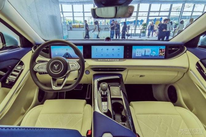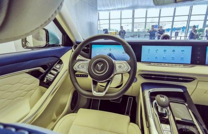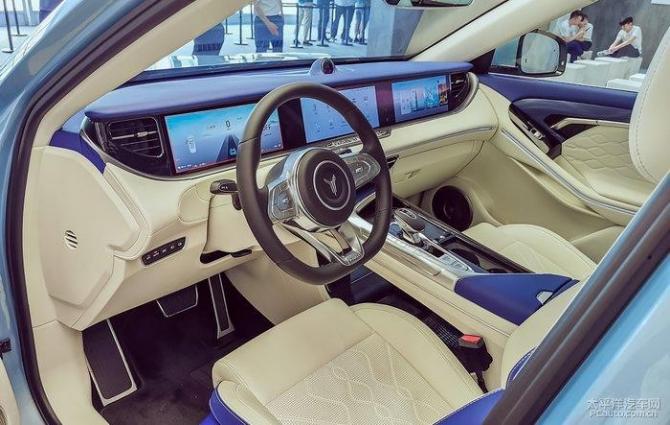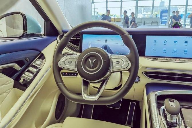 內(nèi)飾的設(shè)計,典型的新能源品牌的風(fēng)格,反正都是屏幕的設(shè)計,視覺效果出色。