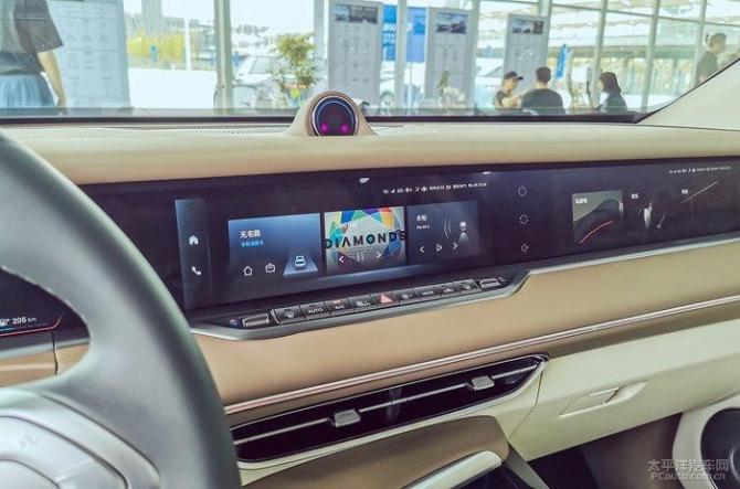 三聯(lián)屏還可以升降,當(dāng)你駕駛的時候,調(diào)節(jié)到運動模式,這個三聯(lián)屏就會自動降下去,逼格滿滿,同是會讓人更有駕駛欲望,就是不知道耐久度如何,還有待市場的考驗。