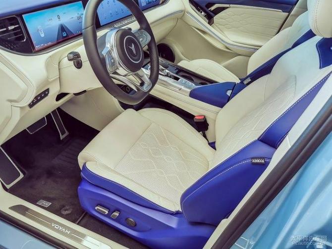 空間上,嵐圖FREE采用了大五座的設(shè)計,實拍車型配色采用了白藍(lán)配色,很有格調(diào)。