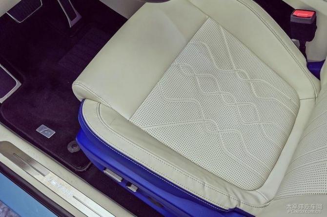 座椅的乘坐舒適度也不錯,前排可以看到腿托還是比較到位的,打孔真皮座椅,在紋路上也做了一定的文章,即保證了舒適度,也增加了視覺享受。