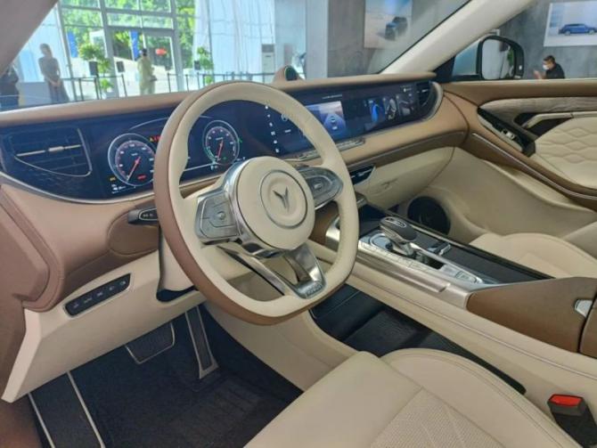 新車(chē)內(nèi)飾設(shè)計(jì)起來(lái)是豪華感和科技感并存,新車(chē)的方向盤(pán)采用經(jīng)典的三幅式方向盤(pán),在方向上也是用鍍鉻加以裝飾,同時(shí)也是采用皮質(zhì)包裹。