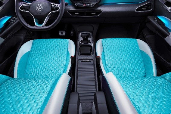 來到座艙內(nèi),ID.3的儀表臺采用橫向貫通布局,富有立體雕塑感的裝飾面板貫穿整個中控臺,搭配10英寸懸浮式中控大屏營造出未來觀感。此外,30色內(nèi)飾氛圍燈讓整車氛圍更加高級,燈光交互更具情感化。值得一提的事,ID.3內(nèi)飾的材料做了全新的復(fù)色工藝設(shè)計,以極光綠動內(nèi)飾為例,其座椅材料使用藍(lán)色與黃色紗線,配合金屬質(zhì)感的紗線,經(jīng)過了融合之后產(chǎn)生了偏藍(lán)又偏綠的高格調(diào)色彩,在不同的角度和光線之下呈現(xiàn)出豐富的色彩和光影的變化,視覺效果讓人想起印象派的名作。