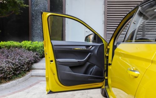 車門扶手位置采用了皮革包裹,并采用了與車身同色的縫線來(lái)提升整體效果。