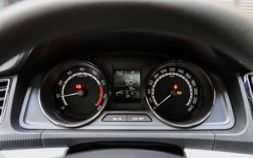 儀表盤是傳統(tǒng)的雙筒式設(shè)計(jì),中間的屏幕能夠顯示基本的行車信息。