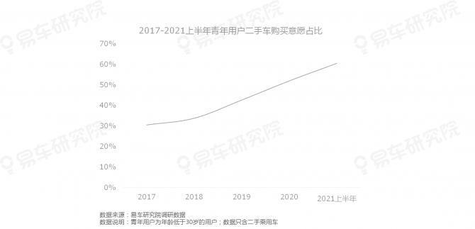 2017-2021上半年,青年用戶二手車購(gòu)買意愿持續(xù)提升,加速推動(dòng)中國(guó)二手車市場(chǎng)消費(fèi)年輕化