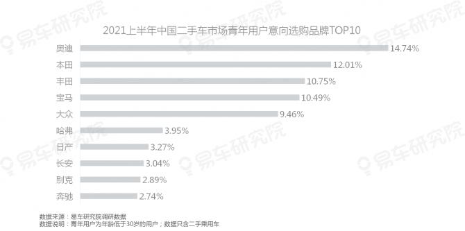 近幾年,奧迪新車大規(guī)模降價(jià)促銷與奧迪二手車保值率大幅下滑等,大幅增強(qiáng)奧迪在二手車市場(chǎng)的競(jìng)爭(zhēng)力,2021上半年,奧迪領(lǐng)銜青年用戶二手車意向選購(gòu)排行榜。寶馬、奔馳也晉級(jí)TOP10,共同助力廣大青年用戶提前實(shí)現(xiàn)“豪車夢(mèng)”;