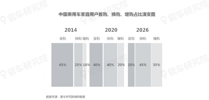 2021-2026年,青年用戶加速涌入二手車市場(chǎng)、增換購(gòu)用戶持續(xù)增加等,預(yù)判青年用戶主導(dǎo)的首購(gòu)新車市場(chǎng)的占比將大幅跌至20%,同時(shí),中國(guó)車市將進(jìn)入中(老)年用戶主導(dǎo)的新時(shí)代,35歲及以上用戶的銷量貢獻(xiàn)將達(dá)到70%;