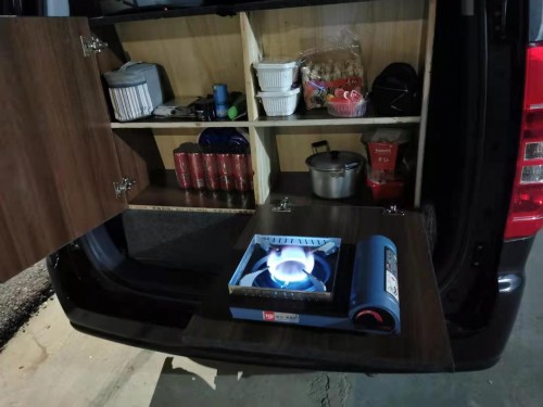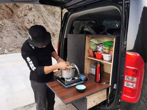 不過更令羅濤洋洋自得的還是瑞風(fēng)M3的后尾箱?!拔覍⒑笪蚕涓脑斐闪艘粋€簡易的廚房,在里面裝上了一個大柜子,用來擺放各種食材、調(diào)料以及廚房餐具,然后把小桌板抽出來,架上燃?xì)庠?,一個移動廚房就打造出來了,這樣在人煙稀少的大西北地帶就可以吃上一碗熱飯、喝上一杯熱水,解決了我和朋友的飲食問題。”