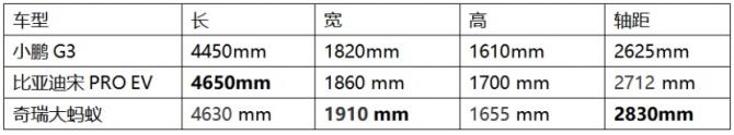 對(duì)比比亞迪宋PRO EV 、小鵬G3以及奇瑞大螞蟻三者,大小差距便一目了然。小鵬G3在整車尺寸、軸距上均占劣勢(shì)。而宋PRO EV與奇瑞大螞蟻則各有千秋,前者在長(zhǎng)、高方面略勝一籌,而大螞蟻在寬和軸距方面有著明顯的優(yōu)勢(shì)。在衡量車內(nèi)空間時(shí),軸長(zhǎng)比越高,車廂空間利用率就越高。奇瑞大螞蟻車身軸長(zhǎng)比0.611,純平后排地板,讓車內(nèi)空間最大化,帶給用戶更舒適的駕乘體驗(yàn)。其空間優(yōu)勢(shì)不僅在三者中拔群,更以絕對(duì)優(yōu)勢(shì)力壓同級(jí)車型。后排座椅即使同時(shí)乘坐三人也能盡情舒展,二胎、三胎家庭也不在話下,完美滿足了家庭用車需求。