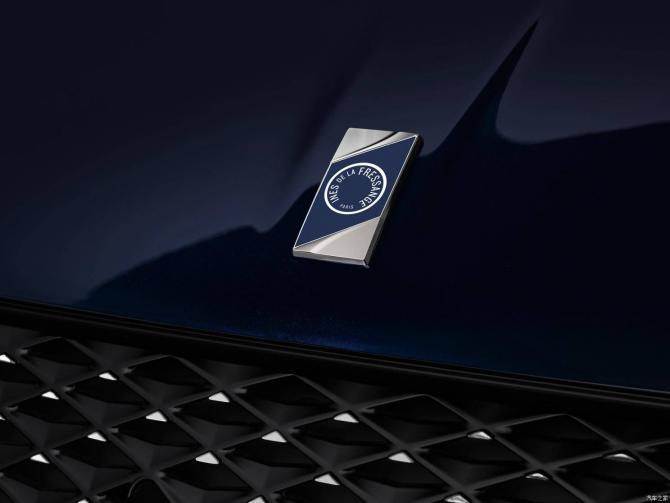 深藍色同樣是新車內飾的主打色調,新車中控臺整體由深藍色Marine Alcantara材質包覆,并搭配深紅色縫線以及座椅織物,工藝來自Ines de la Fressange Paris時裝品牌。同時,新車車內也加入了特別版車型的專屬銘牌。