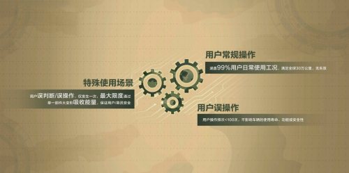 其中,對(duì)于最常見的用戶常規(guī)操作,需要滿足全球30萬公里無失效的考驗(yàn)。而對(duì)于特殊使用場景中用戶的誤判斷和誤操作,需通過最大限度地單一部件變形吸收能量,保證安全無虞。而一般情況下的用戶誤操作,則需要保證在小于100次的范圍內(nèi)不影響車輛的使用壽命、功能和安全性。