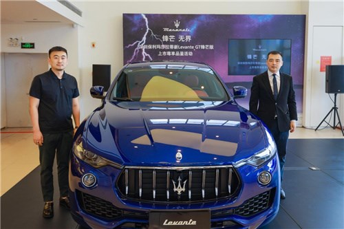 深圳保利瑪莎拉蒂總經(jīng)理闖剛先生和廣東九界貿(mào)易有限公司總經(jīng)理范琳先生在眾人矚目下揭開幕布,瑪莎拉蒂新Levante GT鋒芒版曜世登場!
