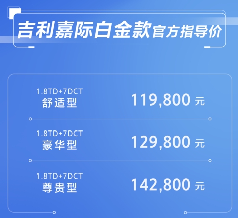 9月26日,吉利嘉際白金款正式上市。新車共推出3款車型,標配2+2+2的6座布局與1.8TD+7DCT黃金動總,官方指導(dǎo)價為11.98萬元—14.28萬元。同時,新車還為用戶推出了3大白金購車禮遇,包括白金煥新:至高5000元增換購補貼;白金按揭禮:0首付/36期0息,至高貼息6000元;白金流量禮:車聯(lián)網(wǎng)終身免費流量。誠意十足的購車權(quán)益,保障用戶購車更輕松、用車更省心。