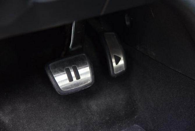 進(jìn)入車(chē)內(nèi),在熟悉的地方你已經(jīng)看不到啟動(dòng)按鈕了,你只需要深踩一下帶有“暫?!睒?biāo)識(shí)的剎車(chē)踏板,車(chē)輛就會(huì)進(jìn)入啟動(dòng)狀態(tài),而旁邊的“播放”按鈕就是傳統(tǒng)的“油門(mén)踏板”,是不是很有意思。