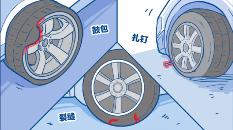 除了正常磨損以外,其他原因造成的,輪胎偏磨、輪輞變形、輪胎變形和胎側(cè)鼓包、扎釘,