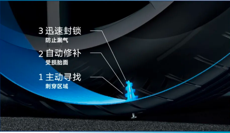 探秘SealTech自修護(hù)技術(shù)背后,當(dāng)輪胎遭遇小于5毫米直徑穿刺損傷時(shí),特殊的黏性密封膠材料“ 主動(dòng)出擊”密封住輪胎胎面的穿刺傷,防止漏氣,旅程不被打斷。