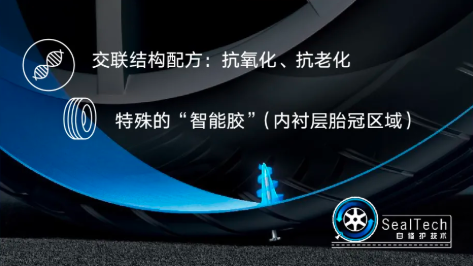 探秘SealTech自修護(hù)技術(shù)背后,其實(shí)是在胎冠氣密層,涂上特殊的黏性密封膠材料,材料中采用了交聯(lián)結(jié)構(gòu)的抗氧化老化的高分子結(jié)構(gòu)的橡膠具有很強(qiáng)的抗氧、抗老化以及不易干的特性。輪胎整個(gè)生命周期都能保持有效且性能穩(wěn)定。