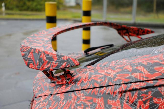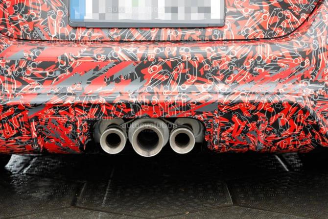 來到車尾,新車依然配備大尺寸擾流板十分搶眼,另外中置共三出排氣布局得以保留,不過排氣的造型由兩邊大中間小的樣子換成了中間大兩邊小。