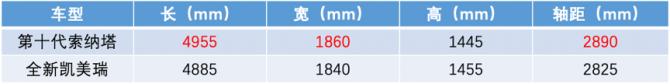 而凱美瑞長(zhǎng)寬高4885mm/1840mm/1455mm、軸距2825mm的數(shù)據(jù)雖然已經(jīng)屬于標(biāo)準(zhǔn)的B級(jí)車尺寸,但長(zhǎng)、寬和軸距仍比第十代索納塔分別少了70mm、20mm和65mm。尺寸的劣勢(shì)帶來的不僅是視覺上的差異,更是乘坐體驗(yàn)上的縮水。
