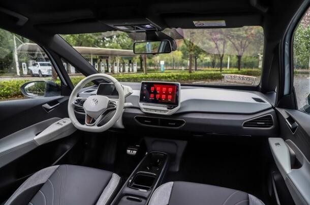 來到車內,ID.3黑白座艙看起來有一種清新素雅的感覺。同時也運用了極簡設計,肉眼能看到的中控按鍵幾乎沒有,布局十分簡潔。此外,中控屏偏駕駛員一側,日常大部分功能按鍵可通過中控屏來完成。