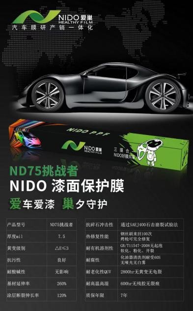 令消費者頭大的選擇品牌問題也日漸突出,而NIDO愛巢品牌漆面保護膜因為自己強大的防護功能,日漸被車主所熟知和認可。