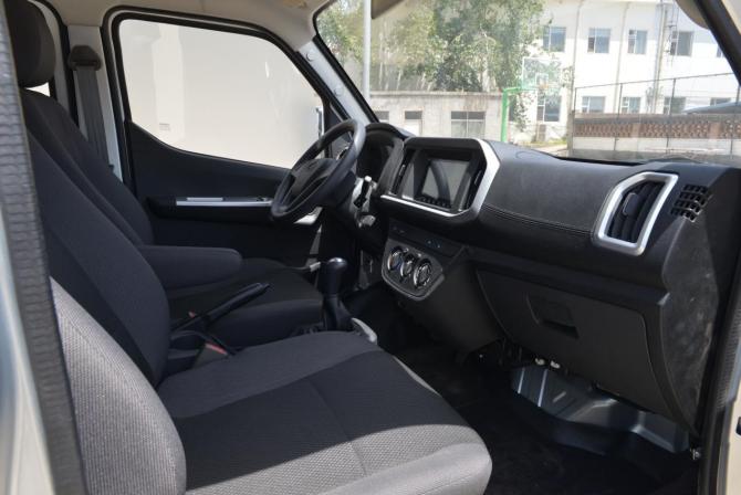 在內(nèi)飾空間的營造上,細節(jié)設(shè)計更加人性化, 中控儀表臺采用亞光銀裝飾條,皮紋飽滿,同時配有雙縫線造型,簡約大氣;駕駛室的橫向空間加寬度到1.66米,為您營造家一般的感覺;雙排后排座椅后翻結(jié)構(gòu),座椅翻折后可呈現(xiàn)出1m3的儲物空間;駕駛室布置了多達12處的儲物空間,用品隨處放;
