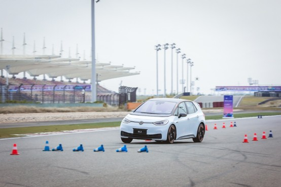 在接下來(lái)的麋鹿測(cè)試,ID.3同樣表現(xiàn)得游刃有余。得益于后輪驅(qū)動(dòng)帶來(lái)的良好循跡性,雖然小編是剛剛接觸到ID.3,但以70km/h的速度通過(guò)麋鹿測(cè)試還是非常輕松。