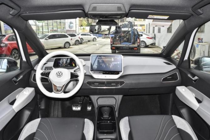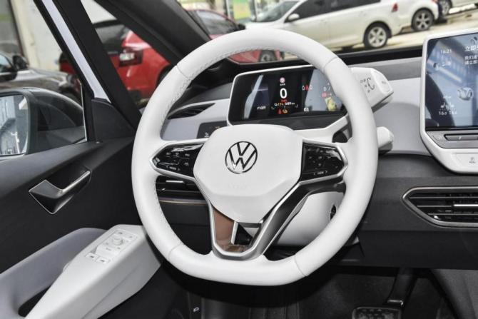關(guān)于內(nèi)飾部分的設(shè)計,我們也簡單來了解一下,首先ID.3采用了當(dāng)下ID.系列車型慣用的設(shè)計風(fēng)格,整體簡潔但不失檔次感。比如中控臺5.3英寸液晶儀表配合10英寸懸浮式液晶屏,再加上AR-HUD抬頭顯示系統(tǒng),也算是達到了三屏聯(lián)動的效果,自然有效提升科技氛圍,夜晚再配合ID.Light光語系統(tǒng),讓30色氛圍燈發(fā)揮出它最強的威力,保證視覺體驗不輸邁巴赫,當(dāng)然本身ID.3在內(nèi)飾配色上就十分細心,像這種白色皮革就屬于頂級豪車專屬。