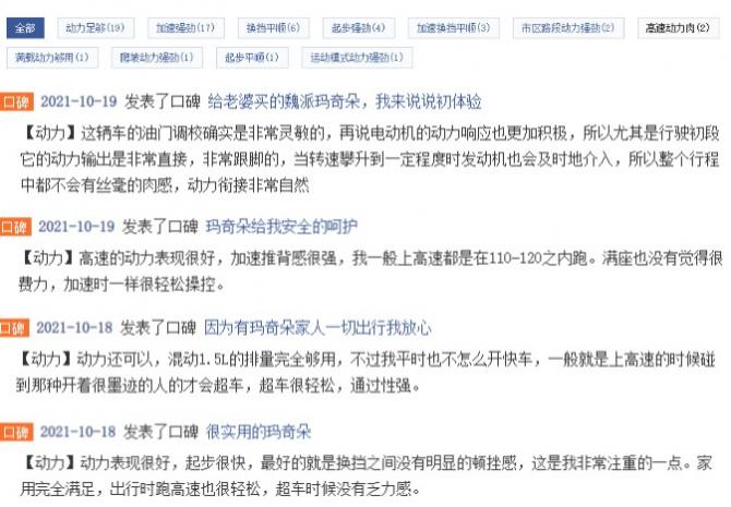 瑪奇朵DHT是魏牌的首款檸檬智能混動DHT產(chǎn)品,動力方面的感受勢必成為用戶最為關(guān)注的體驗方向。根據(jù)汽車網(wǎng)站的動力口碑匯總,不少車主都表達出了動力強勁、換擋平順的駕駛體驗。