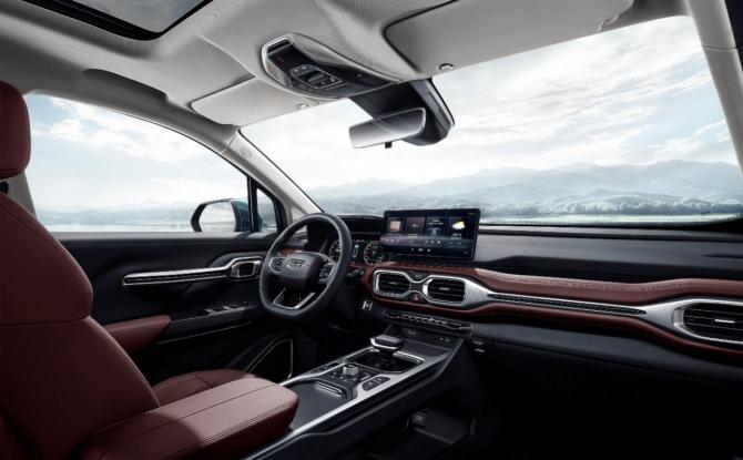 新豪越的科技精工內(nèi)飾,讓科技與精致相得益彰。內(nèi)飾采用大漠棕撞色設(shè)計(jì),大面積的紅棕與純黑配色細(xì)膩搭配,層次分明。貫穿式中控臺(tái)與“∞”造型的空調(diào)出風(fēng)口相互呼應(yīng),并延伸至兩側(cè)懸浮式門把手區(qū)域,舒展且充滿視覺延伸感。雙層中央通道設(shè)計(jì),上層集成電子換擋桿和功能區(qū),下層大型空間雙側(cè)取物。全新航機(jī)式電子手柄,小巧精致,握感舒適。60英寸巨幕全景天窗,擁有1.06㎡高透光防紫外線玻璃,可阻擋93%以上的紫外線,下雨、鎖車時(shí)還會(huì)智能關(guān)窗。