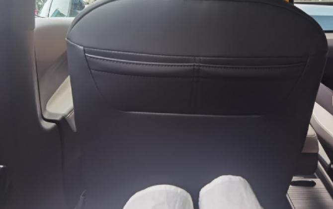 把前排座椅調整到適合自己的位置后,再坐在第二排,膝蓋和小腿空間也有不少。我用拳頭測了一下,膝蓋距離前方有著兩拳左右的空余。后備箱的容積也不小,兩側內壁沒有什么凸起,感覺放幾個大行李箱也綽綽有余。