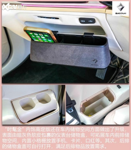 當(dāng)代年輕人出行,不會大包小包,但肯定會很多零散的小東西,比如手機、錢包、卡包等等,KiWi EV”時髦金”就很巧妙的設(shè)計了很多用來裝載零碎物品的小儲物格,在后排有獨特的儲物盒蓋,里面可以很輕松地塞下手機、口紅等物品,跟現(xiàn)在年輕人的出行習(xí)慣相吻合。