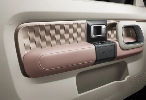 前面說到了宋茜的兩重身份,除了是KiWi EV的全球代言人外,身為創(chuàng)意總監(jiān)宋茜也參與了定制車型“豬小八”的設(shè)計,而宣布量產(chǎn)的 “時髦金”就是基于“豬小八”的內(nèi)飾設(shè)計打造的。