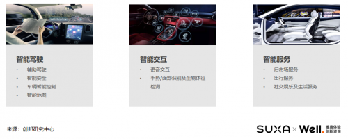 智能汽車包含智能駕駛、智能交互和智能服務(wù)三大要素。其中,智能交互是抓手和入口,智能駕駛和智能服務(wù)是輸出的駕駛操控體驗和服務(wù)體驗,以智能化技術(shù)為核心的自動駕駛是必備功能,以網(wǎng)聯(lián)化為核心的智能服務(wù)是體驗和商業(yè)模式創(chuàng)新的切入點。