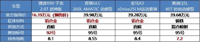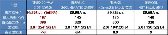 具體來看,與奔馳GLC、寶馬X3、奧迪Q5L等動輒接近40萬售價的合資豪華品牌車型相比,捷途X90 子龍的動力性能全面領(lǐng)先,參數(shù)甚至堪比豪華品牌高功率發(fā)動機,無疑更具性價比。