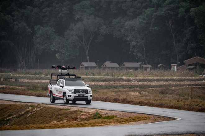 同時,整車設(shè)有農(nóng)業(yè)無人機、無人車、電池、充電箱等專用固定卡點,牢固安全,可避免設(shè)備在復(fù)雜的路況下受到顛簸而折損;車輛還配備290升防浪水箱,可以更好地保持車身穩(wěn)定,減少顛簸。