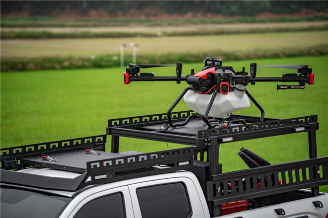 在作業(yè)完成后,隨車配備的高壓水槍還能夠及時清理掉農(nóng)業(yè)無人機上的農(nóng)藥殘漬,避免車身及設(shè)備腐蝕,為新農(nóng)人與農(nóng)藥之間隔起一道屏障,呵護人身健康。