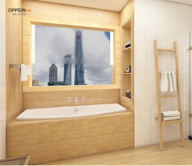 ▲利用浴缸上方空間打造壁龕,用來放置沐浴使用的毛巾浴巾、香薰、沐浴露等,拿取方便,又不占空間。