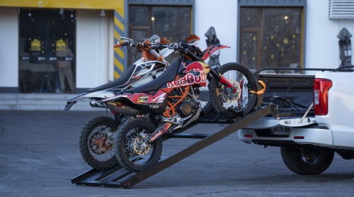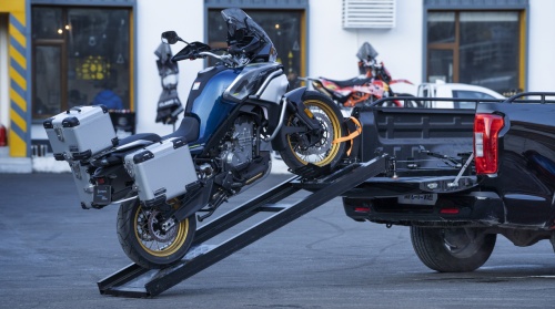 新車擁有2475mmx1520mmx540mm的超大貨箱,具備1.4噸的超強(qiáng)承載能力,可滿足市場上絕大多數(shù)機(jī)車的裝載需求。機(jī)車架采用高強(qiáng)度絞盤滑軌機(jī)構(gòu),單人即可通過遙控絞盤輕松完成機(jī)車的裝卸,同時(shí)具備機(jī)車前輪專用固定裝置,搭配尼龍卡扣綁帶增強(qiáng)穩(wěn)定性,無論是高速、多彎的山路,還是越野路況,都可以保證機(jī)車的安然無恙。
