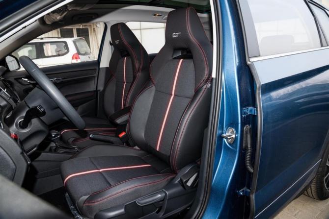 進(jìn)入車內(nèi)后,柯米克GT的中控臺和普通版沒有太多區(qū)別,依舊是采用規(guī)整的展翼式布局,而大量平直線條以及兩側(cè)扁平的空調(diào)出風(fēng)口設(shè)計,讓層次感有不錯表現(xiàn),并且GT潮感撞色內(nèi)飾和撞色飾條配合GT風(fēng)格一體式座椅,自然彰顯出同級少見的運(yùn)動氛圍。再就是中控臺8英寸鏡面觸摸屏,搭載斯柯達(dá)數(shù)字互聯(lián)系統(tǒng),可以實(shí)現(xiàn)智能手機(jī)映射,像是全自動空調(diào)帶PM2.5過濾空氣凈化系統(tǒng)、集成20項(xiàng)功能的ESP車身電子穩(wěn)定系統(tǒng)、倒車后視影像系統(tǒng)、PDC數(shù)字式倒車?yán)走_(dá)等實(shí)用配置一應(yīng)俱全,出色的車機(jī)互聯(lián)體驗(yàn)等著大家。柯米克GT全系配置無鑰匙進(jìn)入與啟動,還擁有一塊1.18㎡可開啟式全景天窗,乘坐體驗(yàn)更加舒適。