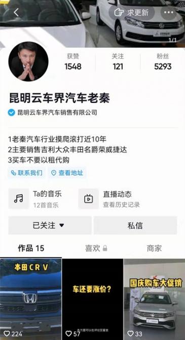 疫情反復疊加缺芯,給車市帶來重創(chuàng),門可羅雀的生意令老秦焦急又無奈,而短視頻、直播的迅猛發(fā)展,又似乎讓他嗅到了“另辟蹊徑”的可能性。今年4月,他開始將一些散落在生活中與買車、用車相關的碎片化知識,通過短視頻向外傳播,有時是自制短劇,有時是干貨分享,形式多樣。這其間,他不斷嘗試積攢流量,并逐步擴展至直播領域。通過直播,打通門店與消費者之間的溝通渠道,讓大家通過電波面對面溝通,主播既是消費者專業(yè)的汽車知識顧問,又是親切的老朋友,依靠直播構建起更加牢固的信任關系?!耙咔槠陂g大家都見不著面,通過直播實時交流互動,少了微信文字的冰冷感,多的是一種有溫度的接觸”。