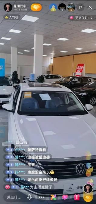 “輝哥問帕薩特優(yōu)惠多少錢?全部落地的話大概在……”“下面我們再來看看這款車”“這里我想告訴大家驗車的話,需要注意……” 聲線敦厚溫柔,對評論區(qū)不斷彈出的問題一一作答;鏡頭時不時轉(zhuǎn)向展廳內(nèi)陳列的各色車輛,這是昆明車商秦路幸的直播間常態(tài),周末也不停歇。疫情之下,門店慘淡經(jīng)營,前來看車的人數(shù)陡降。但在直播間里,秦路幸與購車者有了新的交匯點。