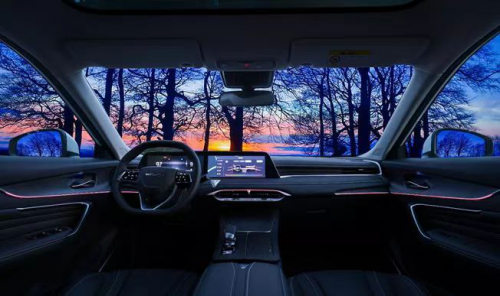 1.7平方米超廣角光感天幕與超寬體動感車身,讓駕乘都可以大開眼界,所到之處天生帶感。采用黑科技低輻射玻璃,在保證絕佳透光率的基礎(chǔ)上,吸收熱量同時有效隔絕99.9%的紫外線,還原真實的車外景色,放心賞景無懼陽光。V型隱藏式設(shè)計氛圍燈,采用稀有金屬鍍層(銦),與鍍鉻飾條完美融合,64種繽紛色彩,6大模式,締造專屬的駕乘空間。