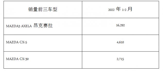 2022年3月4日上海訊 — 馬自達(中國)企業(yè)管理有限公司今天發(fā)布了2022年1-2月馬自達品牌在中國市場的銷售業(yè)績(零售)。2022年1-2月的累計銷量為27,245臺。