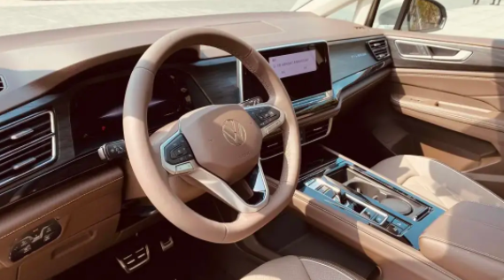 新威然車內(nèi)整體風(fēng)格非常像ID.系列車型。儀表臺結(jié)構(gòu)在不大改的基礎(chǔ)上進行了小幅調(diào)整,主要是中控屏從之前的嵌入式變成了現(xiàn)在的懸浮式,頂部和側(cè)面以啞光金屬光澤材料包裹提升精致度,邊角弧度圓潤,這些都是ID.系列車型中控屏的細(xì)節(jié)特征。