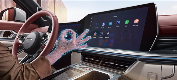 其取消了中央控制區(qū)域大部分的物理按鍵,僅保留了雙閃和啟動(dòng)鍵。想要控制空調(diào)?氛圍燈?或是儀表盤?用戶只需通過(guò)大屏、語(yǔ)音或是一個(gè)手勢(shì)即可,舉手投足間皆是高端。